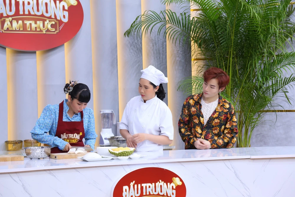 Tuy nhiên cô gái không mấy quen thuộc với việc bếp núc này liền quyết định lựa chọn sự trợ giúp của đầu bếp Thanh Kỹ, trực tiếp giúp cô thực hiện công đoạn khó nhất khi làm mứt dừa sầu riêng đó là sên dừa cùng với sầu riêng.