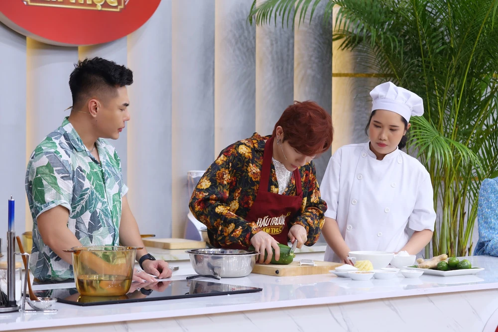 Trương Thảo Nhi bắt đầu 30 phút thử thách với sự hướng dẫn kỹ càng của đầu bếp Thanh Kỹ. Ảnh: JET