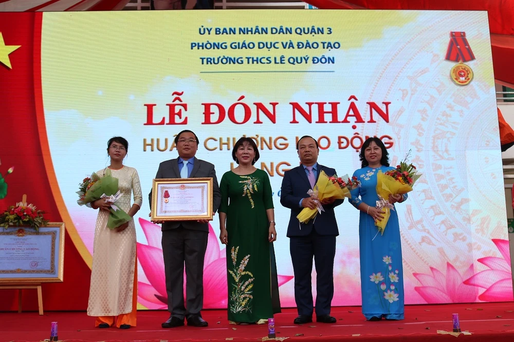 Nhân dịp này, trường đã vinh dự đón nhận huân chương Lao động hạng II do Chủ tịch nước trao tặng. Đây là lần thứ hai Trường THCS Lê Quý Đôn nhận danh hiệu này (lần đầu tiên là vào năm 2013).