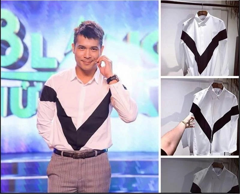 Hình ảnh Trương Thế Vinh và chiếc áo nhãn hàng trong vụ việc lấy quảng cáo.