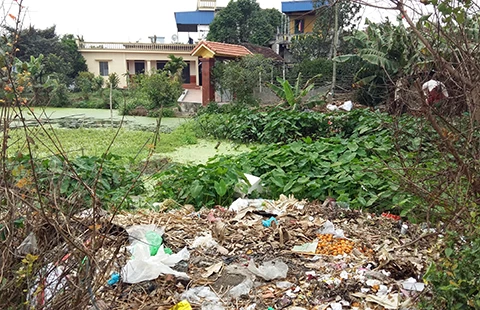 Khu đất 2.130 m2 của gia đình ông Cời bị trưởng thôn cắt một miếng bán đấu giá. Ảnh: HẢI ĐƯỜNG