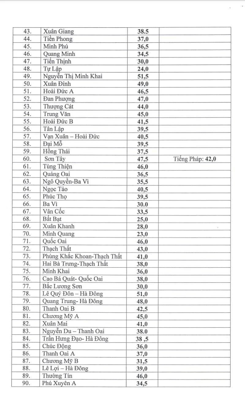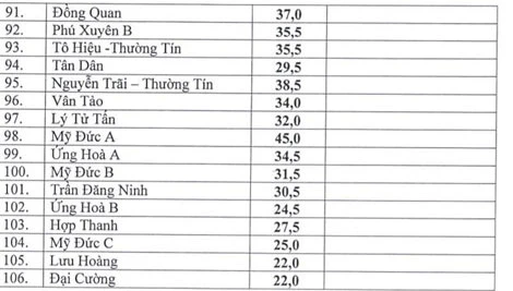 Một số trường lấy điểm đầu vào lớp 10 thấp như trường THPT Lưu Hoàng, Đại Cường với 22 điểm; THPT Minh Quang là 23; THPT Mỹ Đức C là 24; THPT Bất Bạt là 24,5.