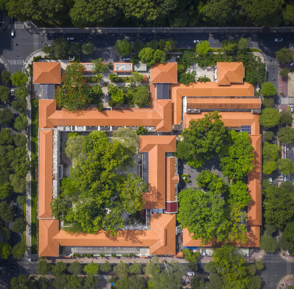 Ngôi trường có kiến trúc Pháp gồm bốn dãy nhà cao hai tầng ghép lại có hình chữ "khẩu", bao quanh là các con đường Nguyễn Thị Minh Khai, Lê Quý Đôn, Võ Văn Tần và Nam Kỳ Khởi Nghĩa.