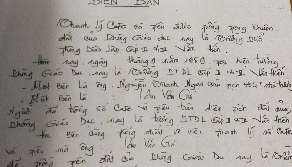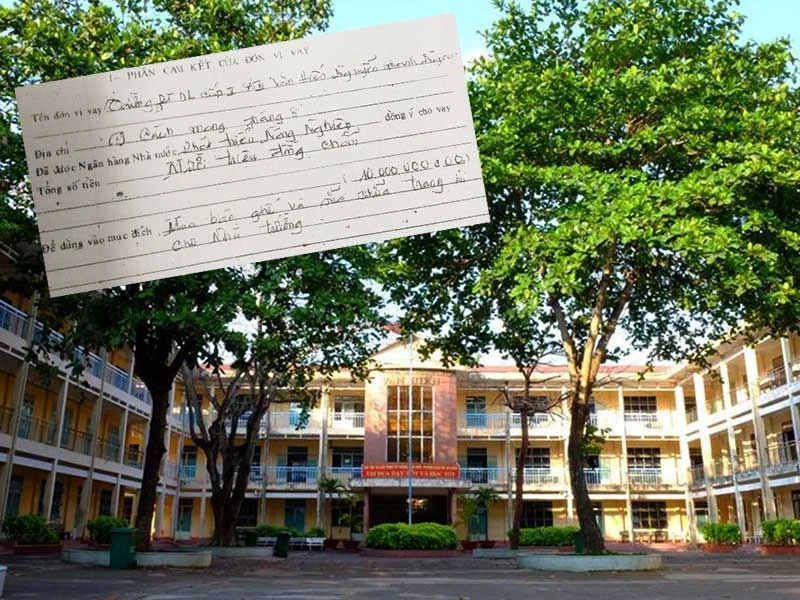Trường THPT Văn Hiến và khế ước vay tiền năm 1989 của ông Ngạn với ngân hàng để đầu tư đóng bàn ghế cho trường. Ảnh: CTV