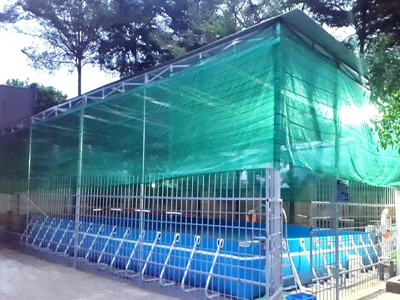 Các phụ huynh cho rằng bể bơi của Trường tiểu học Trần Bình Trọng xây dựng dã chiến, không đúng thiết kế và không đảm bảo an toàn. Anh: T.D