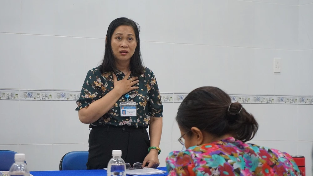 Bà Nguyễn Thị Hồng Yến, Hiệu trưởng nhà trường bày tỏ ý kiến tại cuộc họp. Ảnh: NQ