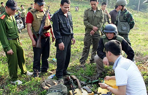 tổ công tác đã nổ súng để phòng vệ, trấn áp tội phạm. Tại hiện trường, lực lượng chức năng thu giữ 10 balô bên trong chứa 160 bánh heroin, ba khẩu AK với 85 viên đạn và nhiều vỏ đạn.