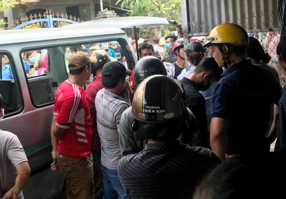 Người dân hiếu kỳ vây quanh khu vực nhà trọ phát hiện thi thể người phụ nữ bị giết.