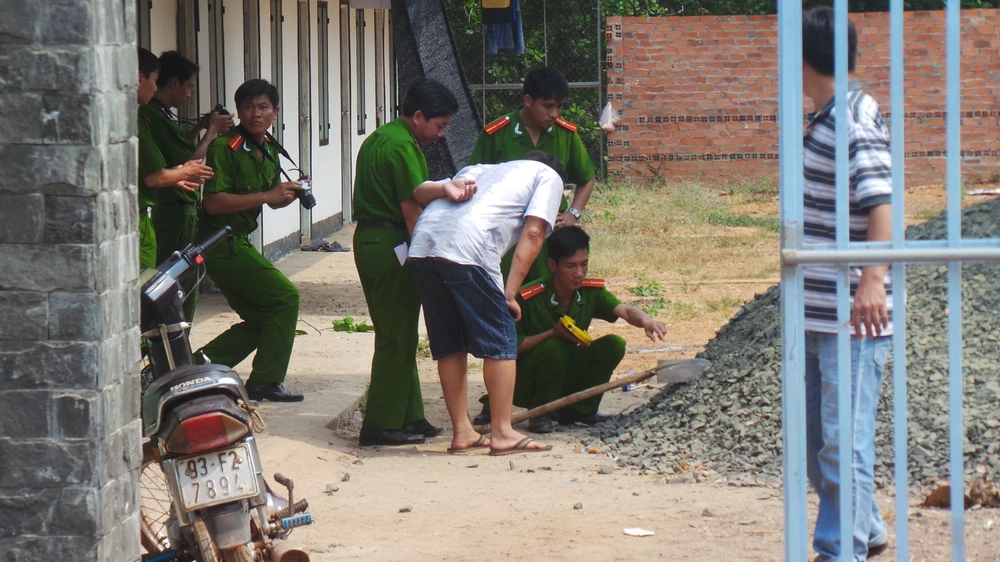 Chú thích: công an đang khám nghiệm hiện trường vụ án (ẢNH H.N)