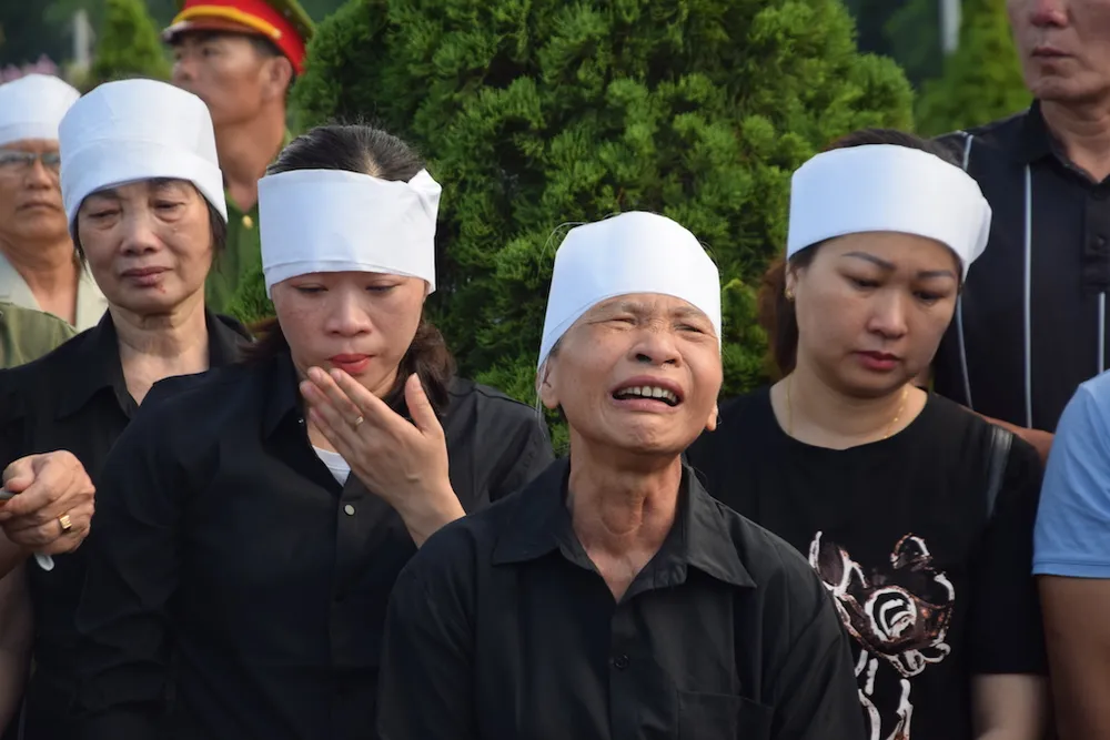 Người thân các liệt sĩ xúc động, không kìm nén được nước mắt. Ảnh: TN