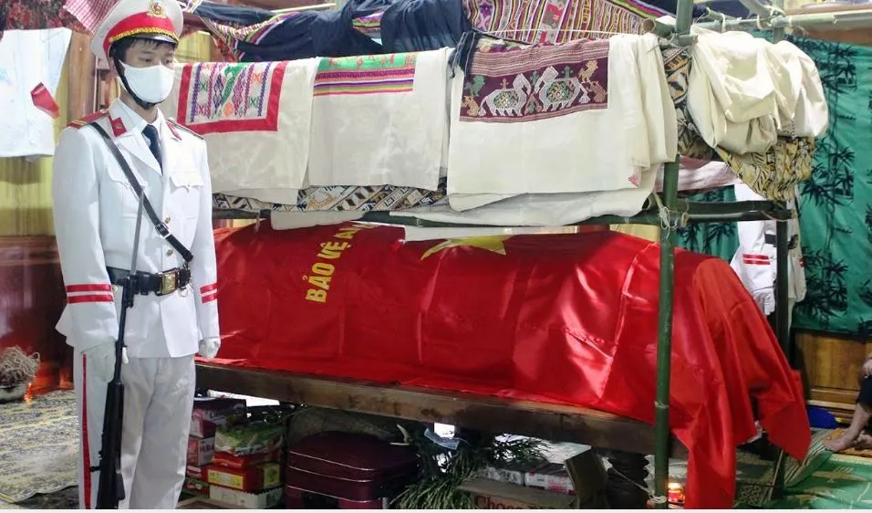 Lê truy điệu được tổ chức theo nghi thức của lực lượng Công an nhân dân tại xã Châu Thắng (huyện miền núi Quỳ Châu, Nghệ An).