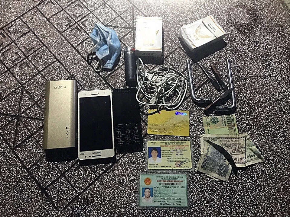 Khám xét, giấy tờ tùy thân của thanh niên này mang tên Nguyễn Trung Hiếu, sinh năm 1992, ngụ tại TP Vị Thanh, Hậu Giang. Trong túi của thanh niên này còn mang theo khá nhiều vam phá khóa mà theo lời thú nhận ban đầu của hắn dùng để trộm cắp xe.