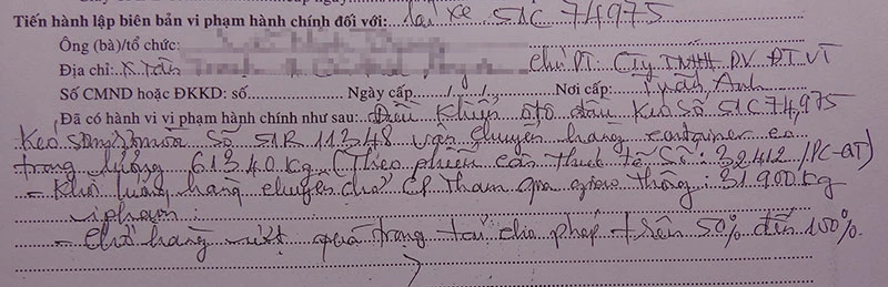 Sau kiểm tra giấy tờ, có kết quả cân xe thực tế… Thanh tra lập biên bản vi phạm. Nhiều lái xe phải thừa nhận đã chở quá tải 50%-100%.
