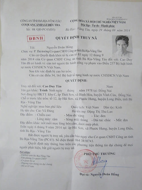 Nhận được tin báo, thiếu úy Lê Hoàng Lâm, công an thị trấn Long Hải và sáu bảo vệ dân phố trong đó có anh Nguyễn Hùng Cường (28 tuổi, KP Hải Sơn) đến hiện trường và mời vợ chồng Cường về trụ sở để giải quyết. Trên đường về, Cường điện thoại cho Cao Duy Tân (tức Tám Trình, 36 tuổi, ngụ xã Phước Hưng) cho biết mình vừa bị đánh. Lát sau, Tám Trình và một nhóm thanh niên khoảng trên 10 đối tượng đi xe ô tô 7 chỗ, cùng 4-5 xe máy đến tìm đánh nhóm của Trung.