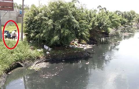 Người dân vẫn lén lút mang rác thải vứt xuống kênh Trần Quang Cơ - rạch Cầu Dừa. Ảnh: TRUNG THANH