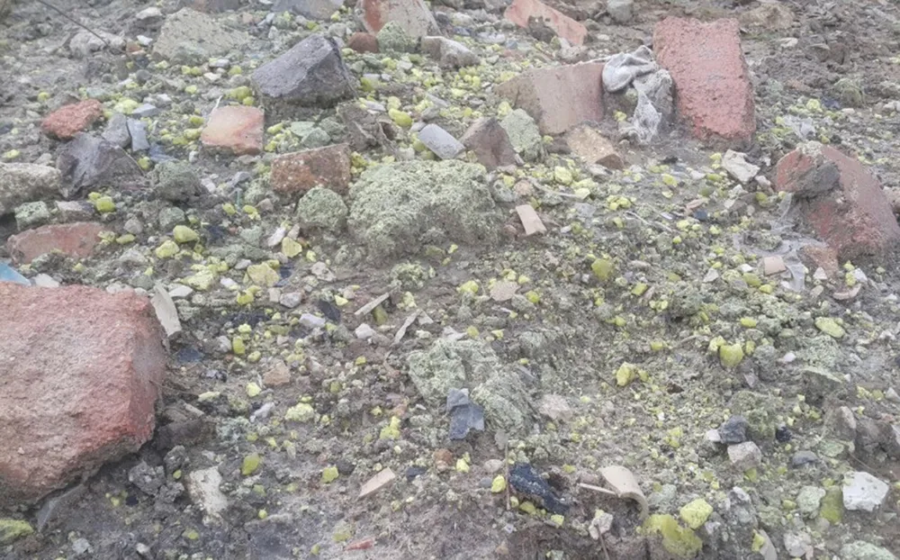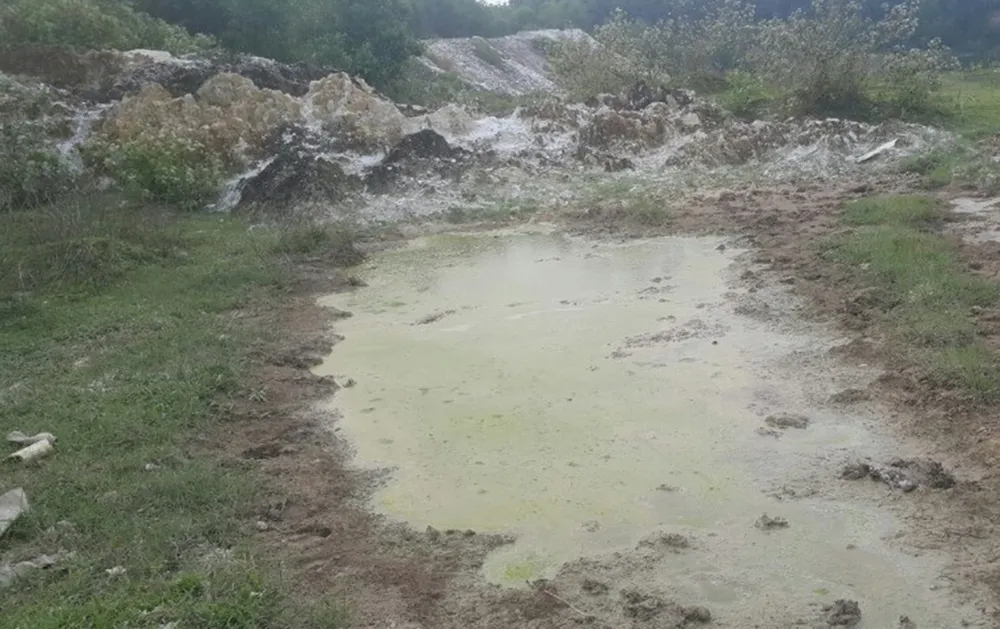 Vũng nước mà vàng bên trong khu đất nghi là lưu huỳnh rỉ ra