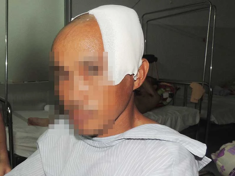 Nạn nhân Tấn Anh bị chém chấn thương sọ não, đang điều trị tại bệnh viện. Ảnh: T.PHÚC