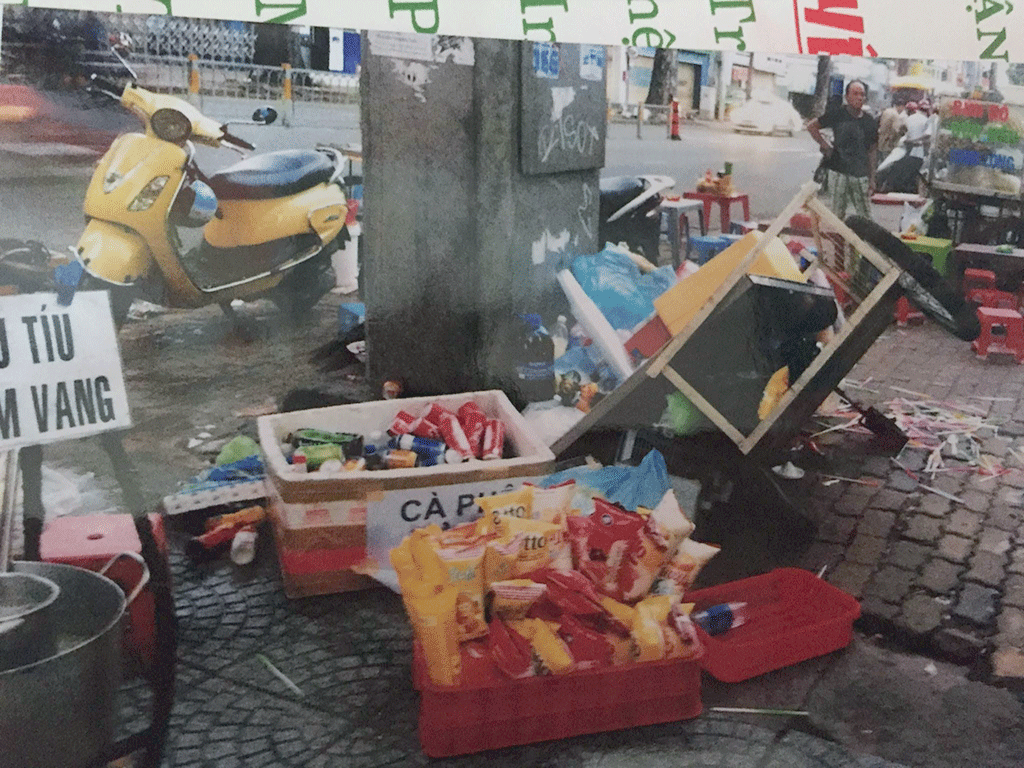 Nhóm thanh niên nói trên bỏ đi sau khi đập phá xe hàng rong của những nạn nhân. Một số hung khí rơi lại tại hiện trường.