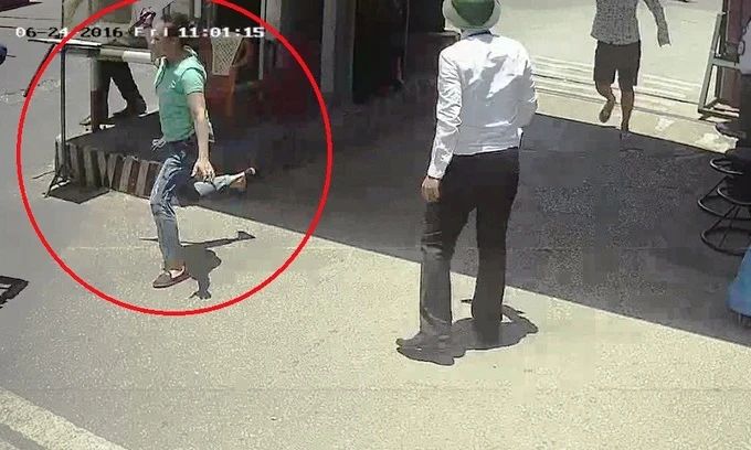 Hình ảnh gây rối, đánh đập nhân viên ở cổng bến xe Vinh được camera an ninh ghi lại.