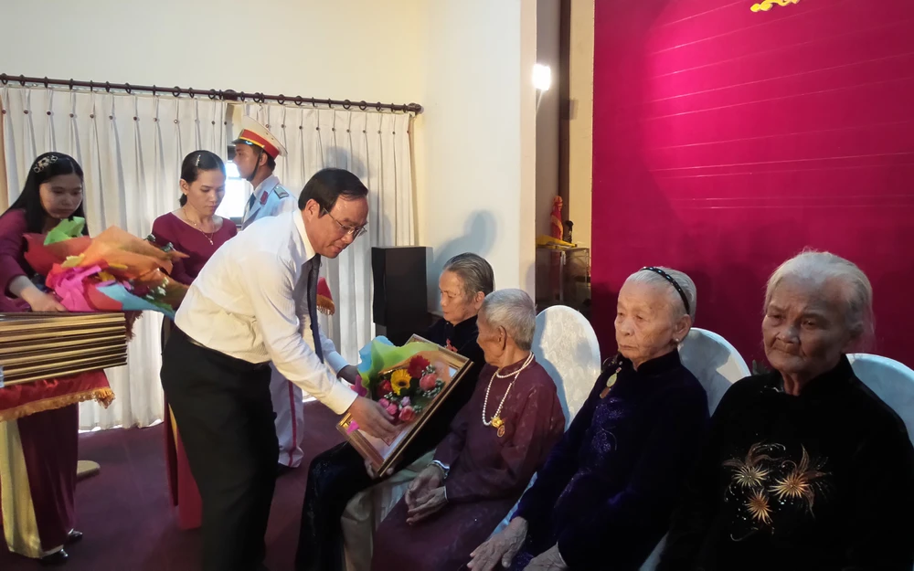 Thừa ủy quyền Chủ tịch nước, đại diện lãnh đạo tỉnh Thừa Thiên- Huế trao tặng dnah hiệu Bà mẹ Việt Nam cho các mẹ còn sống. Ảnh: VIẾT LONG