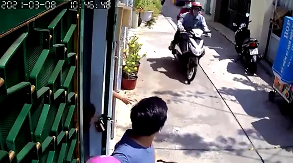 Nhiều người dân gần đó cũng chạy ra đúng lúc hai thanh niên cướp giật chạy đến cuối hẻm thì phát hiện đường cụt nên quay xe chạy ngược trở lại.