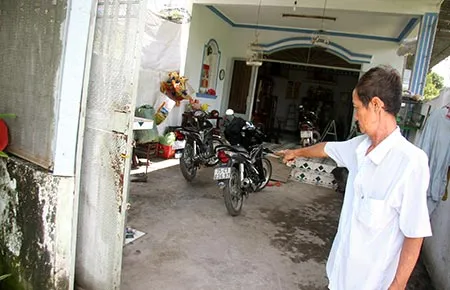 Sân nhà ông Sửu, nơi xảy ra vụ truy sát đêm 14-8. Ảnh: XUÂN NGỌC