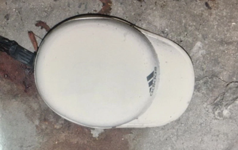 Trước khi bỏ trốn, nam thanh niên đã để lại hiện trường đôi dép quai chéo, màu đen, loại dép Nhật có hiệu Bitis, mũ bảo hiểm hiệu Adidas màu trắng, có lưỡi trai.