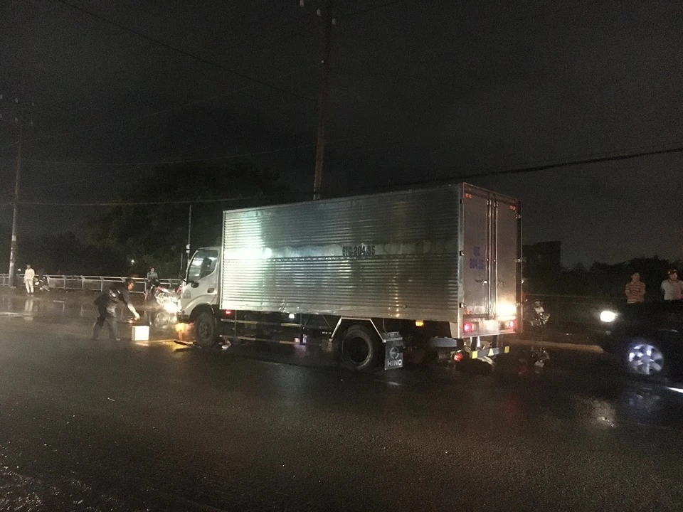 Chiếc xe tải kéo lê người đàn ông gần 20 m trên đường khiến nạn nhân tử vong tại chỗ.
