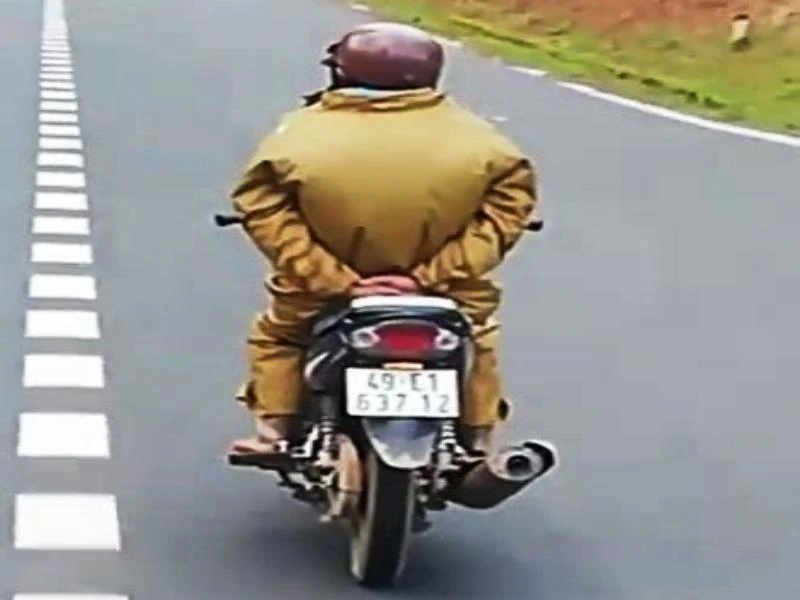 "Hai tay người đàn ông này chắp ra sau lưng trong khi chiếc xe gắn máy vẫn được cài số hoạt động và di chuyển. Lúc này, theo hướng ngược lại có hàng loạt xe ô tô, xe khách và xe gắn máy, rất nguy hiểm nên tôi đã sử dụng điện thoại quay lại cảnh này nhằm cảnh báo mọi người không nên xem thường luật giao thông đường bộ" - anh Tr. nói.