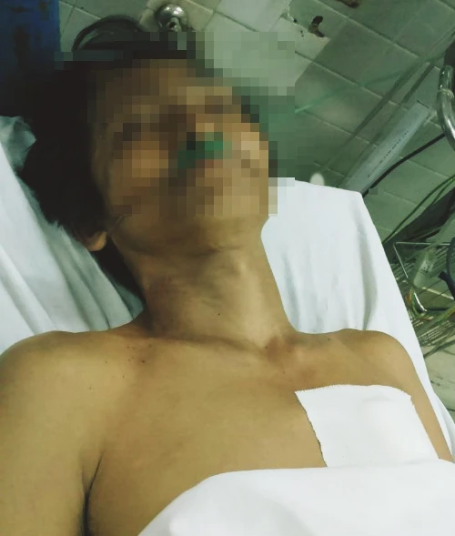 Nạn nhân P.T.H. đang được cấp cứu tại bệnh viện.