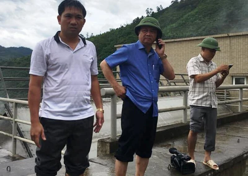 Nguyễn Văn Hải- Chủ tịch UBND huyện Tương Dương (giữa) vào kiểm tra đập thủy điện Bản Vẽ.