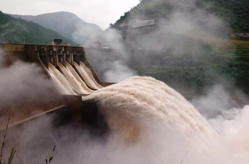 Nhà máy thủy điện Bản Vẽ xả lũ và đang an toàn.