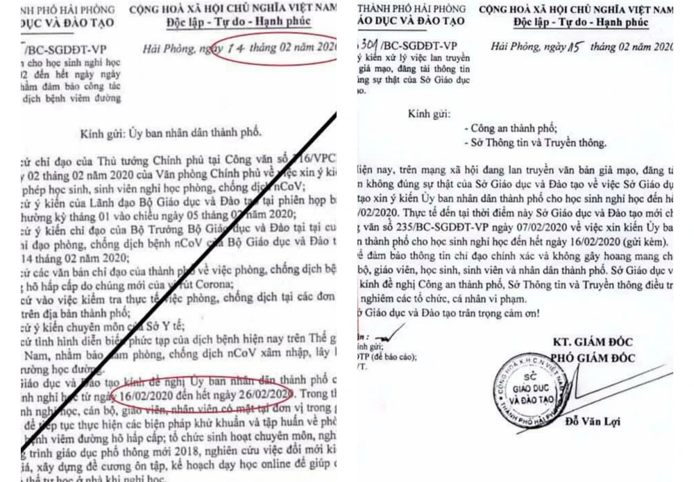 Tuy nhiên, Sở GD&ĐT TP Hải Phòng khẳng định văn bản lan truyền trên mạng xã hội này là giả mạo, gây hoang mang cho người dân. Thực tế, ngày 15-2, Sở GD&ĐT mới có văn bản đề nghị UBND TP tiếp tục cho học sinh kéo dài kỳ nghỉ phòng chống dịch.