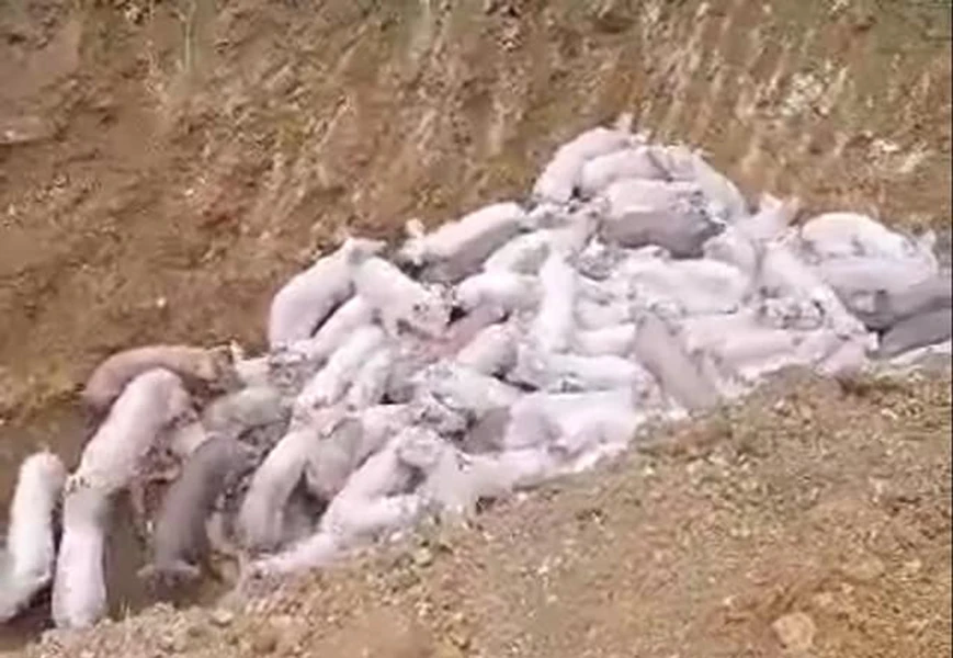 Cán bộ chính quyền địa phương phải đi bắt, thu gom khoảng 100 con heo con để đào hố tiêu hủy.
