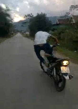 Một người chạy sau xe máy quay video clip và một người nói lớn: "Quế Phong đó, không phải vừa mô (không phải vừa đâu - PV), "Quế Phong đó, không phải vừa mô", "Không phải đùa mô mà là thật đó". Đến cuối video người thanh niên này bị ngã xe máy.