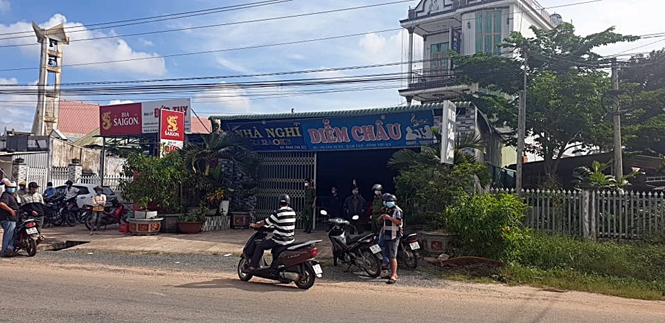 Trước đó, khoảng 12 giờ trưa cùng ngày, chủ nhà nghỉ Diễm Châu thấy khách thuê phòng từ lúc 15 giờ ngày 12-7 nhưng chưa xuống trả phòng nên lên phòng gõ cửa.