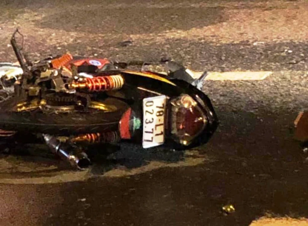 Xe máy của nam sinh viên trong vụ tai nạn.
