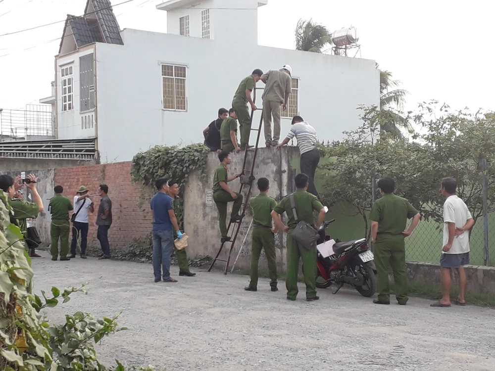 Lực lượng công an khám nghiệm hiện trường. Ảnh: LÊ ÁNH