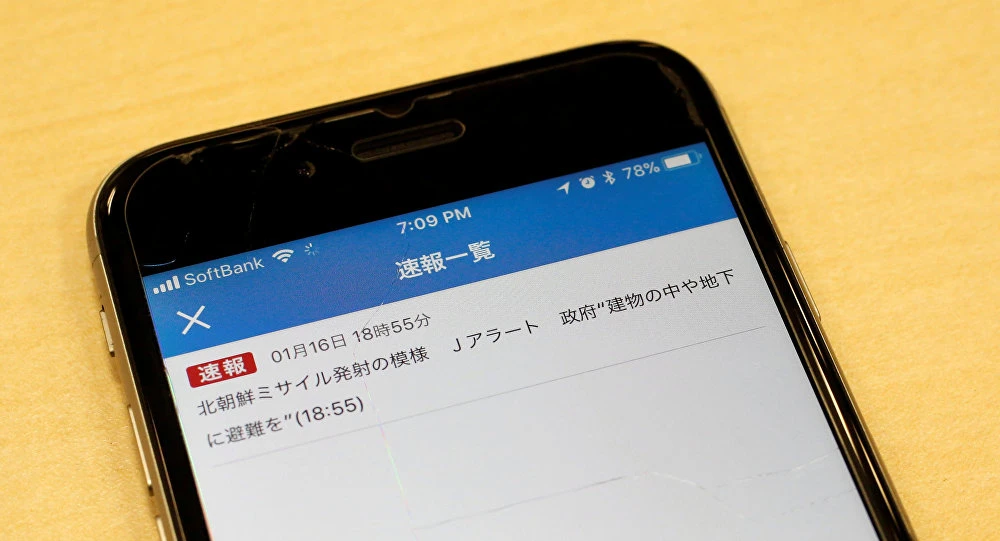 Tin nhắn báo động Triều Tiên phóng tên lửa của đài NHK được gửi tới người dân Nhật Bản thông qua ứng dụng điện thoại của đài. Ảnh: REUTERS