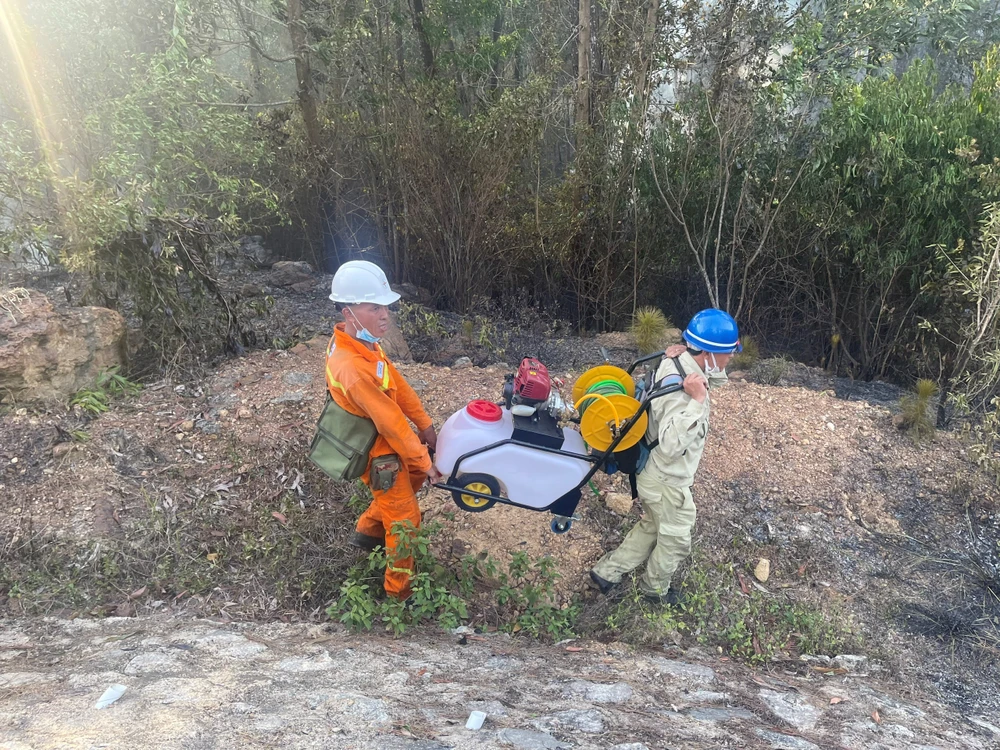 Ngay sau khi nhận được thông tin có xảy ra cháy rừng, đơn vị đã huy động lực lượng và phương tiện đến hiện trường tham gia phối hợp với lực lượng PCCC tỉnh tiến hành dập lửa.