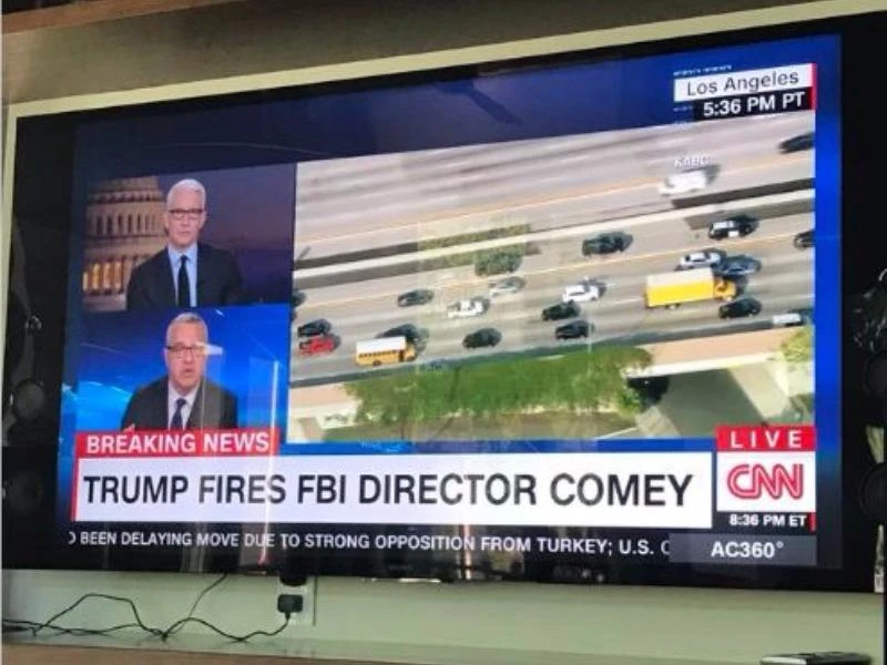Hình ảnh do các hãng này ghi lại đã được phát trực tiếp trên truyền hình. Cảnh này cũng được chia sẻ rộng rãi trên mạng xã hội. Khi tới sân bay TP Los Angeles, ông Comey đã bước ra từ một chiếc ô tô màu đen và lên một máy bay riêng cỡ nhỏ vào tối cùng ngày.