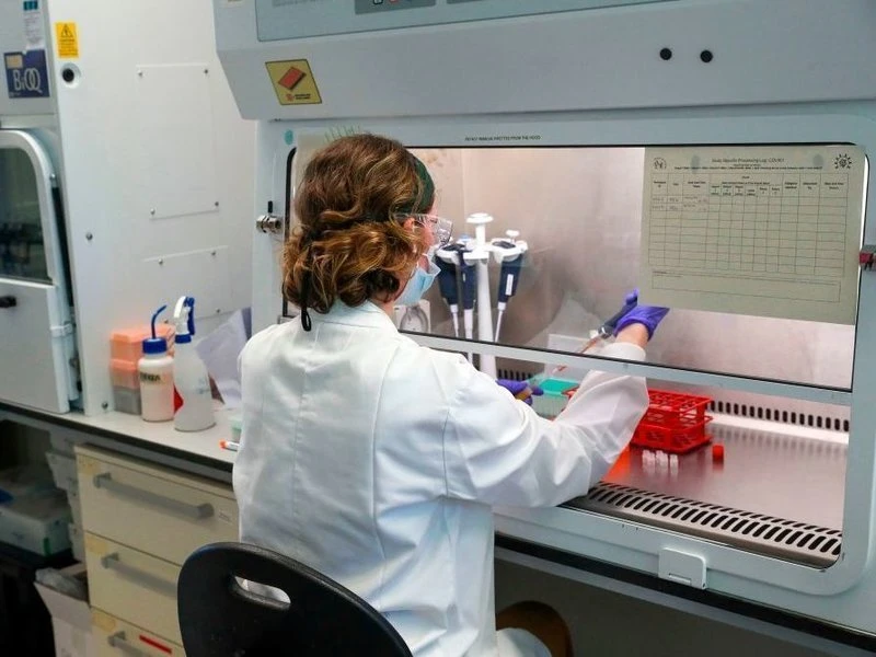 Một nhà khoa học làm việc trong phòng thí nghiệm vaccine tại Bệnh viện Churchill ở Oxford, Anh. Ảnh: AFP/GETTY/ NATINAL PUBLIC RADIO