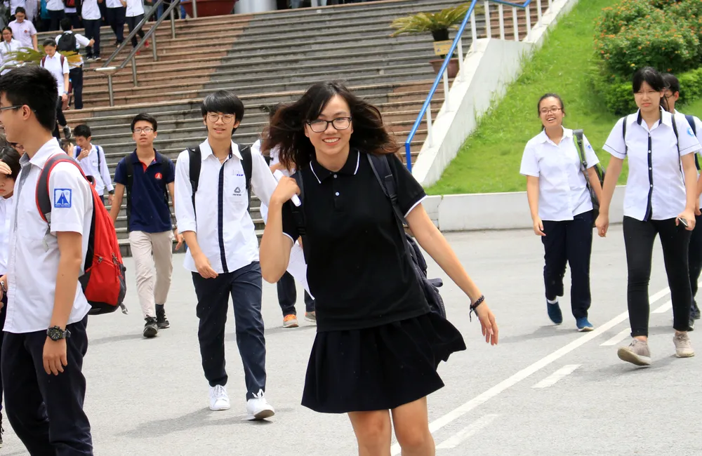 Sau khi hết giờ, nhiều thí sinh bước ra khỏi phòng thi với gương mặt tươi tắn, hớn hở