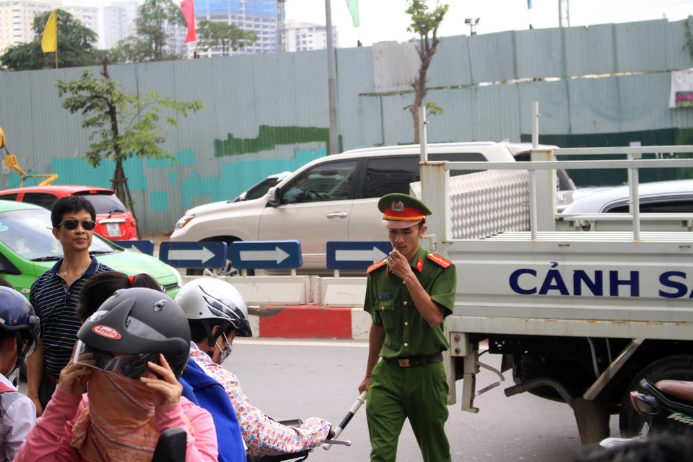 Lực lượng chức năng khá vất vả để phân luồng đảm bảo giao thông.