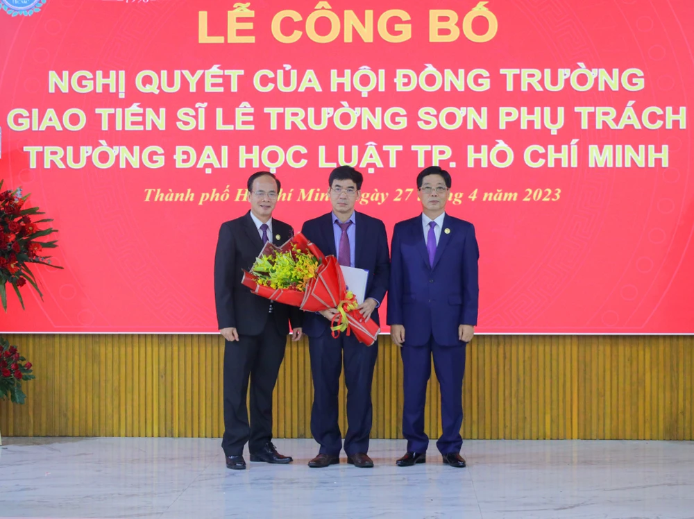 Sáng 27-4, Trường ĐH Luật TP.HCM đã tổ chức Lễ Công bố Nghị quyết của Hội đồng trường về việc giao TS Lê Trường Sơn phụ trách trường.