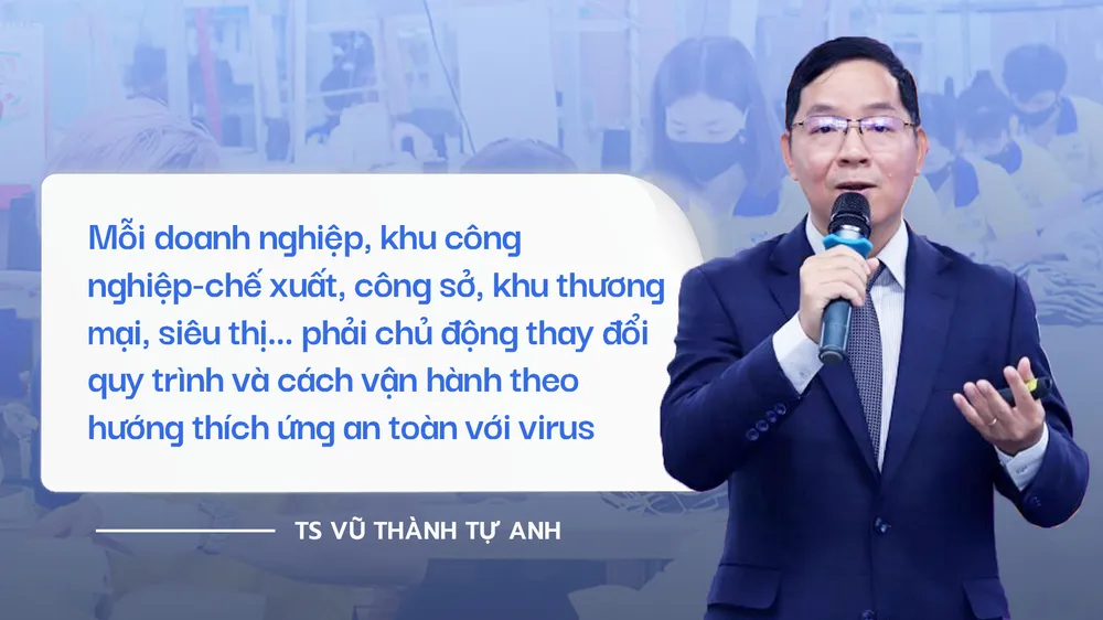 Bên cạnh đó, mỗi doanh nghiệp, khu công nghiệp - chế xuất, công sở, khu thương mại, siêu thị… phải chủ động thay đổi quy trình và cách vận hành theo hướng thích ứng an toàn với virus. Ví dụ, chúng ta có thể tổ chức làm việc, lao động, sản xuất theo hình thái “bong bóng” (bubble), tức là những đơn vị vận hành độc lập và có thể thay thế cho nhau. Khi virus xuất hiện ở “bong bóng” nào thì tách riêng, xử lý “bong bóng” đó và thay nhóm khác vào làm việc chứ không phải đóng cửa cả nhà máy.