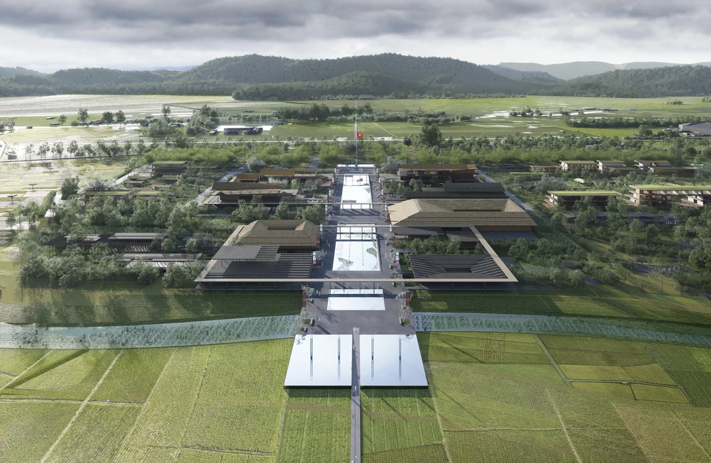 Phối cảnh đồ án “Quy hoạch Bảo tồn, tôn tạo và phát huy giá trị Di tích Quốc gia đặc biệt Khu lưu niệm Chủ tịch Hồ Chí Minh tại Kim Liên, Nam Đàn, Nghệ An” đạt giải Đặc biệt.