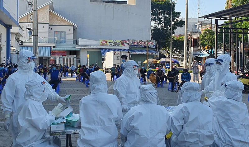 Lấy mẫu xét nghiêm sàng lọc cộng đồng ở TP Tuy Hòa. Ảnh: TẤN LỘC