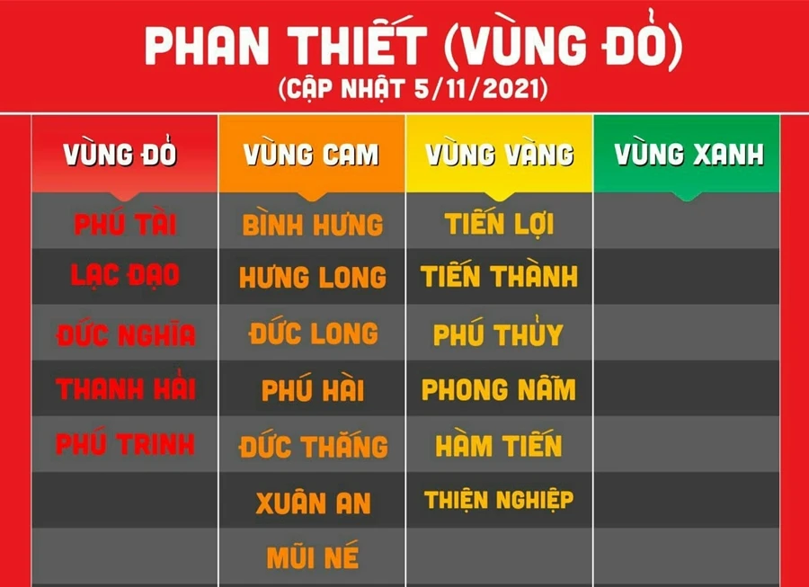 Bảng cấp độ dịch các phường, xã tại Phan Thiết