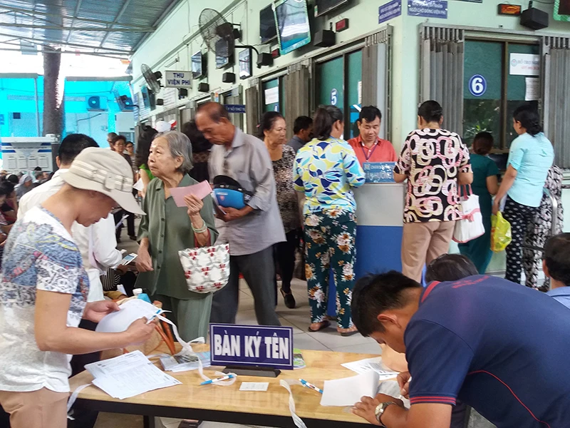 Bệnh nhân BHYT đang làm thủ tục khám và chữa bệnh tại Bệnh viện Nguyễn Tri Phương, TP.HCM. Ảnh: HTD